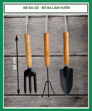 Bộ dụng cụ làm vườn 3 món (cán gỗ) gọn nhẹ làm vườn